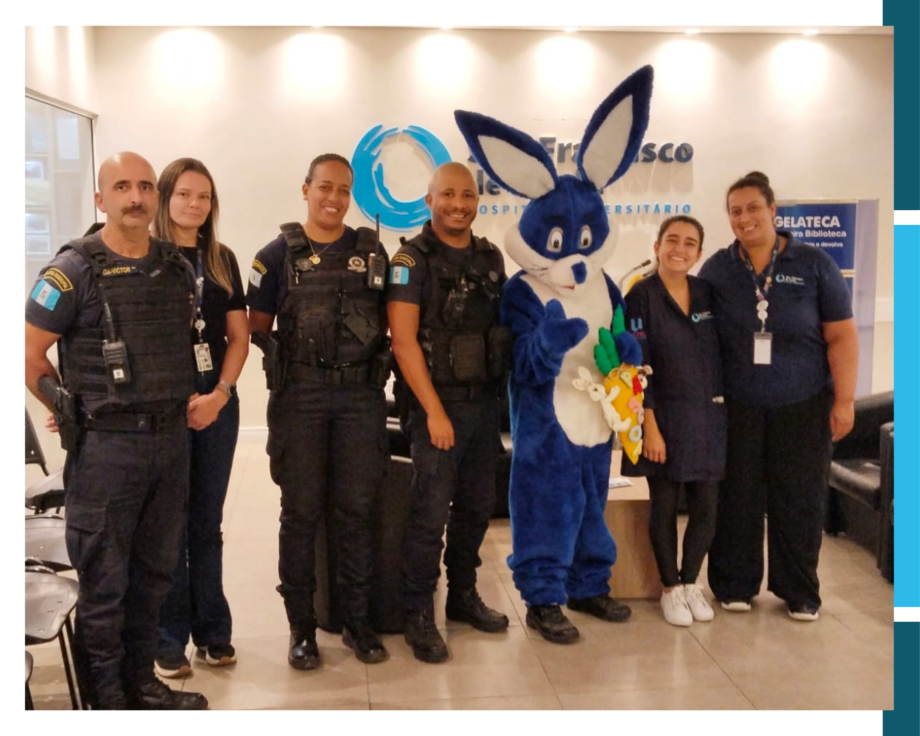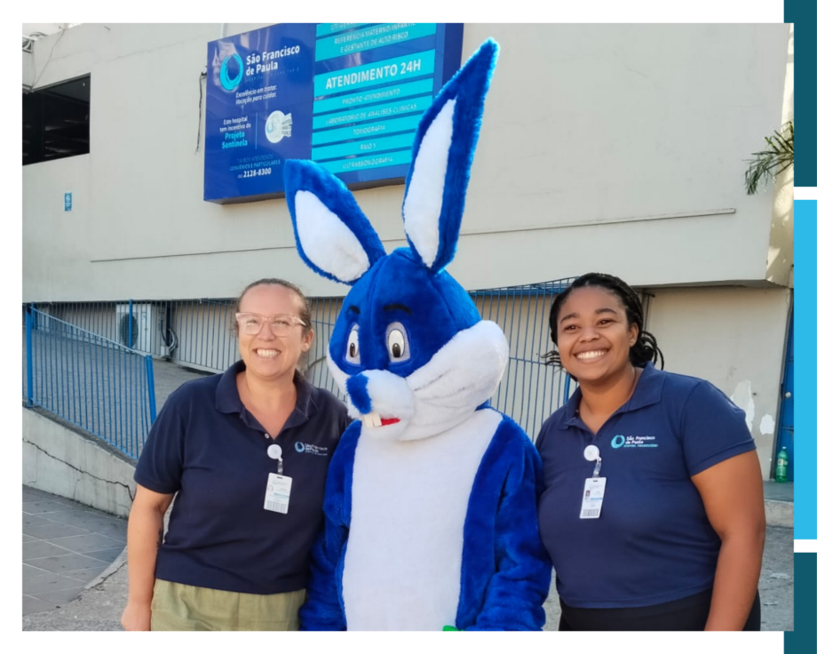 O Hospital Universitário São Francisco de Paula (HUSFP) recebeu uma visita especial que levou ainda mais alegria à ala de pediatria: o Coelho da Páscoa, acompanhado por integrantes da Guarda Municipal.