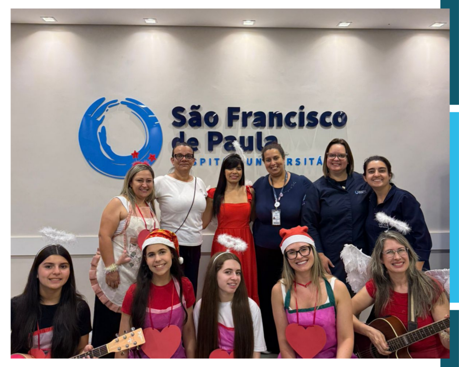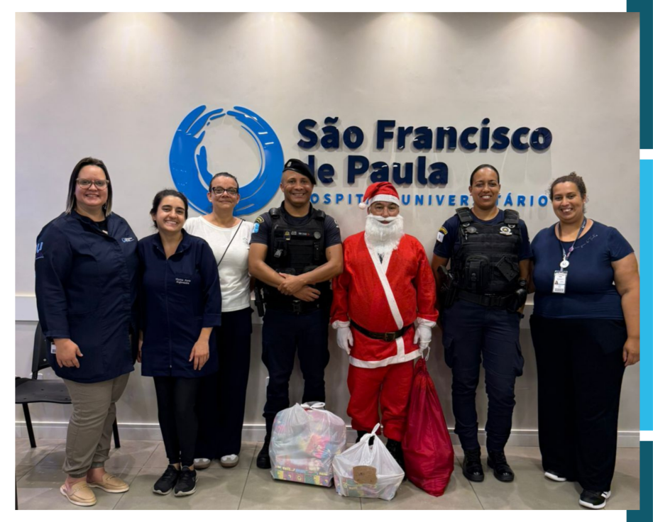 Na tarde da última terça-feira (23), o Hospital Universitário São Francisco de Paula recebeu duas ações natalinas especiais na ala pediátrica, proporcionando momentos de alegria, carinho e esperança às crianças em atendimento. As iniciativas reforçaram o compromisso da instituição com um cuidado que vai além da assistência em saúde, valorizando o bem-estar emocional e a humanização do ambiente hospitalar.