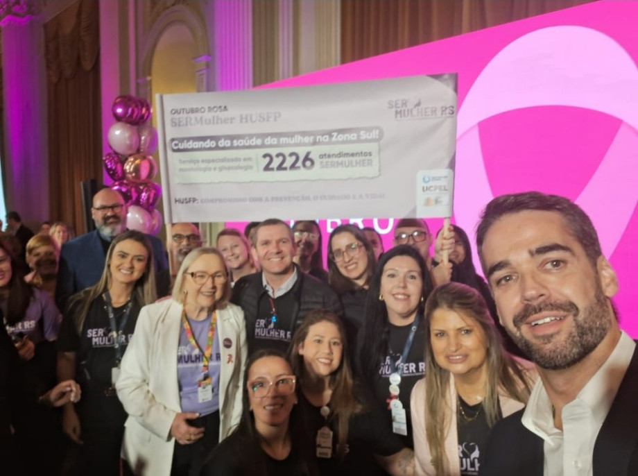 O Hospital Universitário São Francisco de Paula (HUSFP) esteve presente na abertura oficial da campanha Outubro Rosa, realizada pelo Governo do Estado do Rio Grande do Sul nesta semana. Convidada pela Secretaria Estadual da Saúde, a equipe do hospital destacou a atuação do programa “Ser Mulher”, desenvolvido em parceria com a secretaria e focado na promoção da saúde feminina.