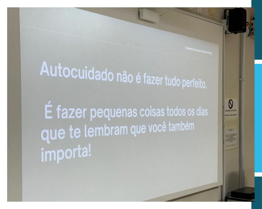 Ao longo da atividade, Janaína destacou que o autocuidado vai muito além de práticas pontuais ou estéticas. Para ela, cuidar de si também significa adotar atitudes simples no cotidiano, como reconhecer os próprios limites, respeitar momentos de pausa e compreender quando é necessário buscar apoio.